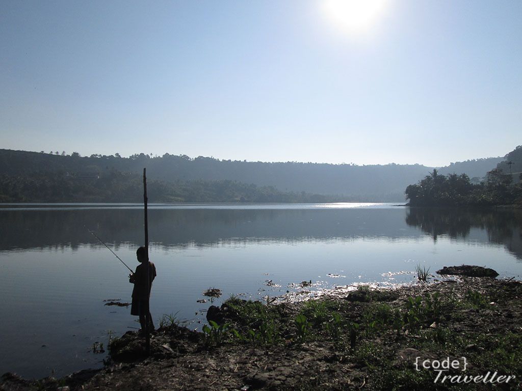 Saya memilih lewat jalur atas alih alih balik lagi ke sabang, karena sekalian mampir ke Danau Aneuk Laot, danau yang menjadi sumber air tawar di sabang. Saya sulit menemukan spot yang pas untuk menikmati danau ini, karena sepanjang jalan dipinggir danau tumbuh lebat pohon pohon, hingga kemudian hampir diujung danau, ada gang yang bisa dimasuki motor, saya coba masuk dan turun menuju bibir danau. Disana sedang ada dua anak kecil yang asyik memancing, karena matahari mulai beranjak meninggi, cahayanya sudah tidak bagus lagi untuk mengambil gambar, terlalu silau. Sebentar saja saya singgah di Danau Aneuk Laot ini dan langsung tancap gas menuju Iboih.