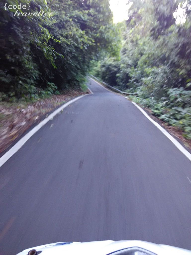 Sepanjang perjalanan yang tersuguh hanya keindahan, jalanan halus, lebar, sepi. Tumbuhan hijau menyelimuti gunung gunung, lautan biru terhampar luas di sisi satunya. Ya Allah begitu indah ciptaan Mu ini. Selain itu kita juga harus melewati hutan dimana masih banyak monyet yang berkeliaran di pinggir jalan, bahkan terkadang ada yang nongkrong di tengah jalan. Jadi harus hati hati ketika melewati jalur ini, karena selain jalan yang naik turun dan berkelok kelok, kadang masih banyak monyet yang wara wiri, hampir saja saya mau di colek juga sama tuh monyet. Selama perjalanan saya sempat rekam beberapa spot, tapi… tapi… nanti juga bakal tahu ada kisah sedih diperjalanan kali ini.