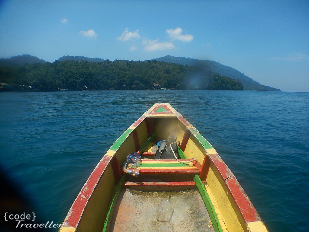 Rasanya pengen balik lagi, tapi sudah sama jauhnya, mau ga mau saya harus melanjutkan perjalanan untuk mencapai tepian. Seluruh tenaga saya kerahkan untuk mencapai pulau rubiah, akhirnya sampai juga. Tantangan belum selesai sampai disitu, saya harus diribetkan dengan bagaimana cara ngikat perahu ke dermaga, hampir beberapa kali mau kecebur saat meraih tiang tiang dermaga.