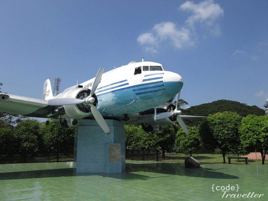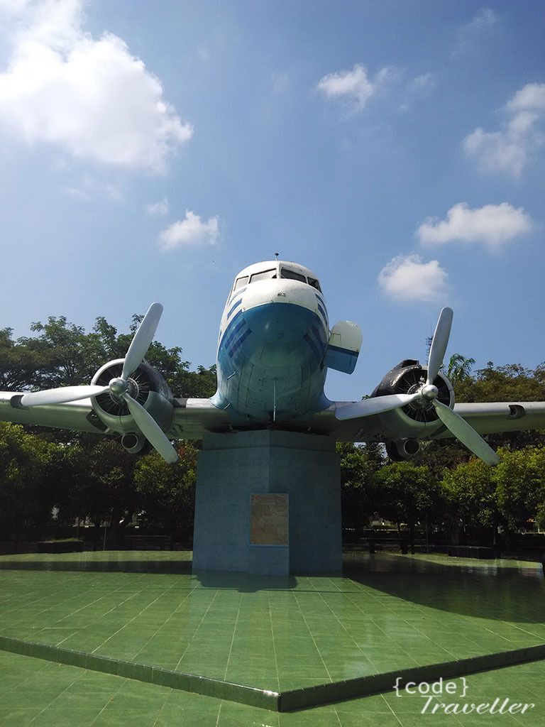 Lapangan blang padang ini semacam alun alun, tempatnya luas, dan di tengah tengah ada pendoponya, yang kemudian membuat saya berkunjung ke sini karena di lapangan inilah terpampang gagah pesawat Dakota RI-001 Seulawah, pesawat resmi milik Republik Indonesia Raya yang merupakan sumbangan dari rakyat Aceh untuk Indonesia.
