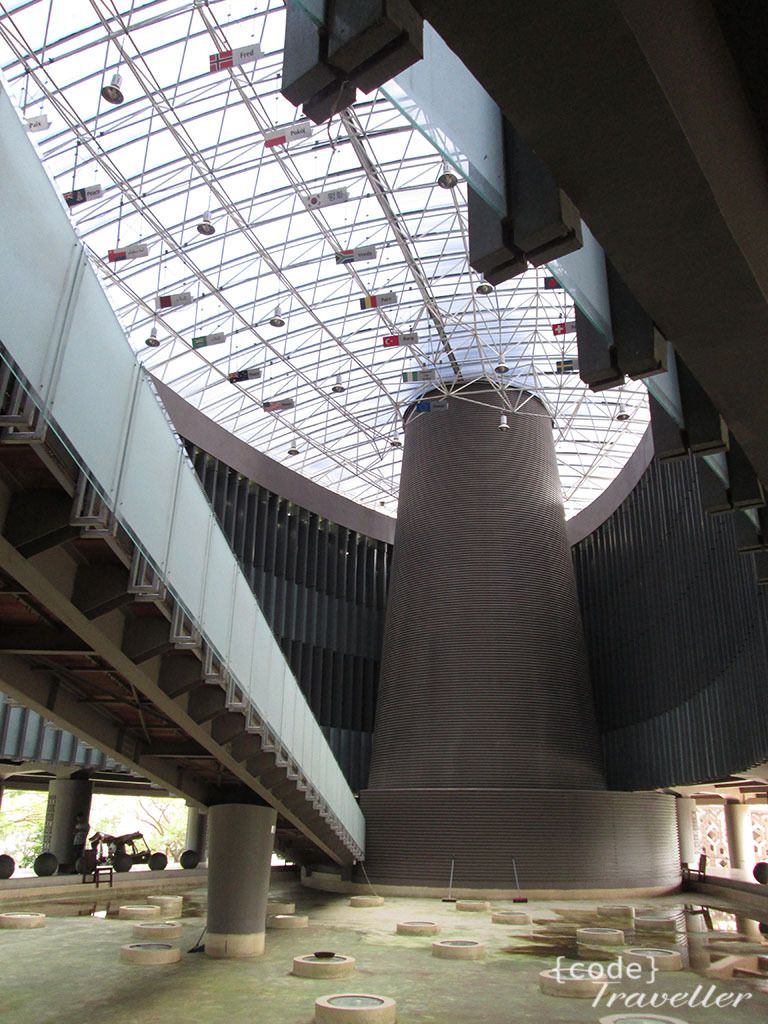 Saya pernah membaca cerita kang emil tentang filosofi arsitektur museum tsunami ini yang mirip dengan kapal di mana ada satu cerobong, menurut dia, pengunjung akan dibawa berkeliling museum ini dalam keadaan gelap kemudian menuju ruang yang terang di lantai atas melewati cerobong tersebut yang dimana di ujung cerobong tersebut ada lafaz Allah. Sebuah perjalanan dari keterpurukan menuju kebangkitan, masih ada secerca harapan.