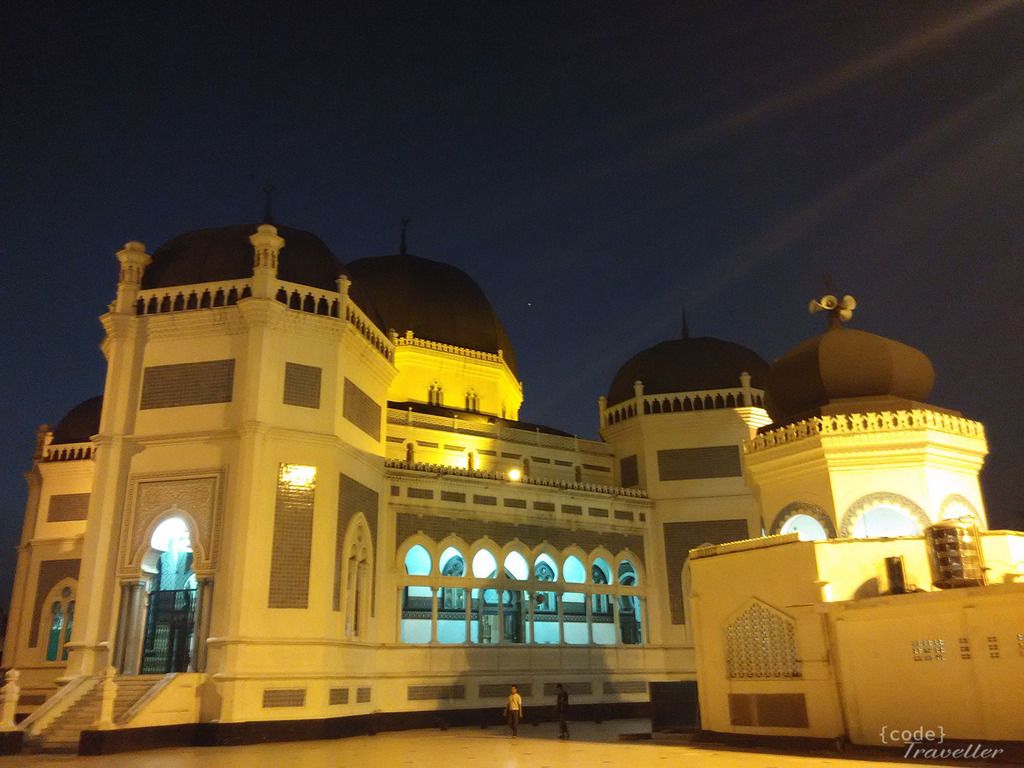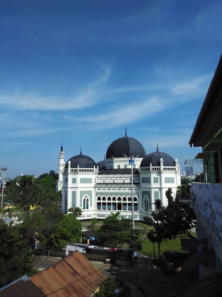 Mahalnya tiket pesawat Banda Aceh – Jakarta, membuat saya memilih alternatif lain, yaitu melalui Kualanamu – Jakarta. Maka jadilah Medan sebagai tujuan saya selanjutnya, setelah selesai menikmati keindahan pulau Weh dan Banda Aceh. Awalnya pengennya sih dimaksimalin explore Aceh nya, tapi kocek berkata lain. Senin malam tanggal 23 Februari 2015 saya berangkat meninggalkan Banda Aceh dari terminal Betoh menuju kota Medan. Ada yang kemudian membuat saya agak terkagum kagum, ketika sampai di terminal mendapati bus bus yang ada di sana keren keren, mikirnya bakal yang bisa, jelek malah. Persepsi saya ini muncul karena yang saya jadikan ukuran adalah bus PMTOH Solo – Banda Aceh, itu bus nya udah seperti kendaraan tempur. Tapi, justru bus PMTOH yang ada di terminal betoh pun juga bagus bagus. Tapi ada sedikit janggal ketika saya dapati di depan kaca ada pelindung, seperti yang ada di kendaraan polisi anti huru hara, saya tanya ke salah satu kenek, kenapa pada dipasangin pelindung? Katanya, masih sering terjadi pelemparan di daerah perbatasan. Waduh, was was juga, hanya berdoa semoga perjalan ke Medan lancara. Pukul 19.00 bus mulai meninggalkan terminal, dengan kursi tidak terisi penuh, tapi kemudian sepanjang perjalanan banyak penumpang yang naik. Dengan durasi perjalanan 13 jam dan biaya Rp 180.000 mikirnya bakal dapat makan seperti bus bus yang ada di Jawa, ternyata sampai kota Medan pun yang keluar hanya snack saja. Fuhhhh… Karena sudah capek, sepanjang perjalanan saya lebih memilih tidur, mengumpulkan tenaga untuk explore Medan esok hari. Ada yang kemudian luar biasa menurut saya, ketika waktu subuh tiba bus berhenti di salah satu masjid, tidak hanya bus yang saya tumpangi, tapi juga ada beberap bus yang lain. Masya Allah, perjalanan jauh tidak membuat orang orang ini lalai atau bahkan mengalahkan sholat.