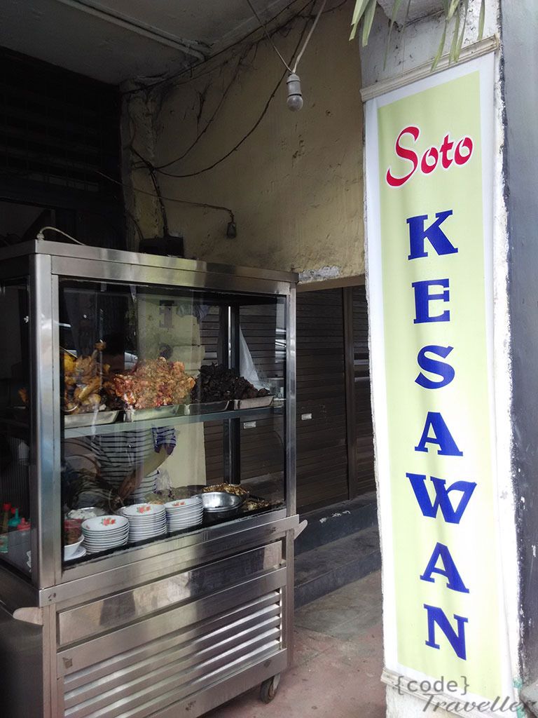 Karena tadi belum kenyang, dan sepertinya lontong sayur pagi tadi udah habis untuk berkeliling istana maimun, next target adalah makan lagi… Yeayyy… Kali ini yang jadi sasaran adalah Soto Kesawan, lumayan bingung juga waktu nyari lokasi nya. Harus beberapa kali tanya, padahal lokasi nya cukup mudah, cuma karena warung nya kecil, jadi tidak begitu mencolok, lokasi pas nya sih di depan gedung Dinas Pariwisata dan Kebudayaan Medan, di Jalan Yos Sudarso, maju dikit dari perempatan Jl. Pemuda dan Palang Merah, sebelah kiri jalan. (Jl. Yos Sudarso ini jalan searah, jadi kalau udah kelewat ya harus muter lumayan jauh).